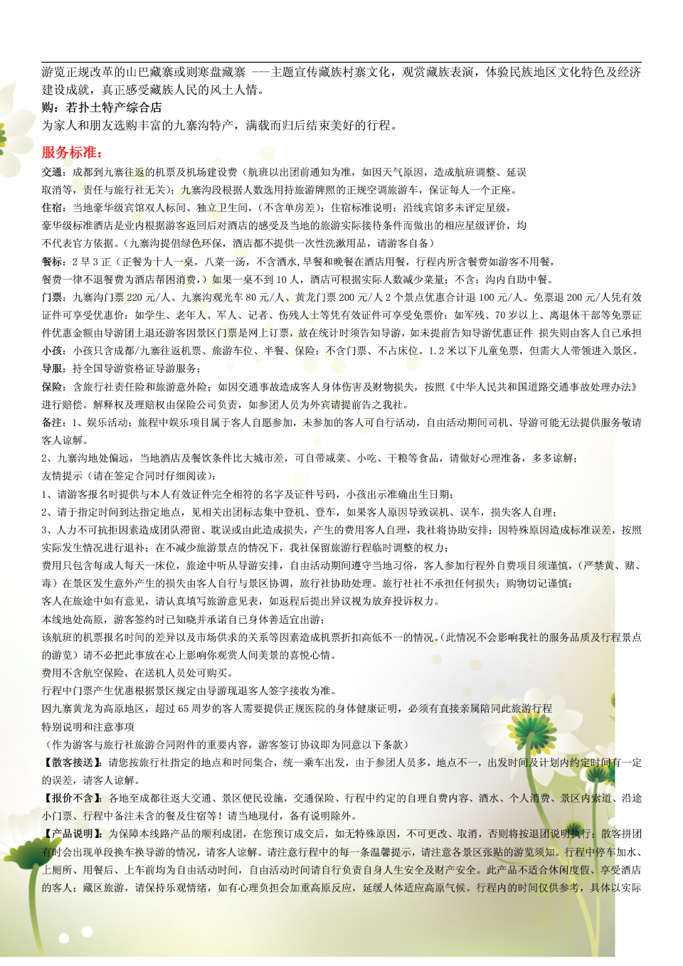 | 行程文档下载: | 九寨沟黄龙双飞特价3日游(中班) 5.doc |